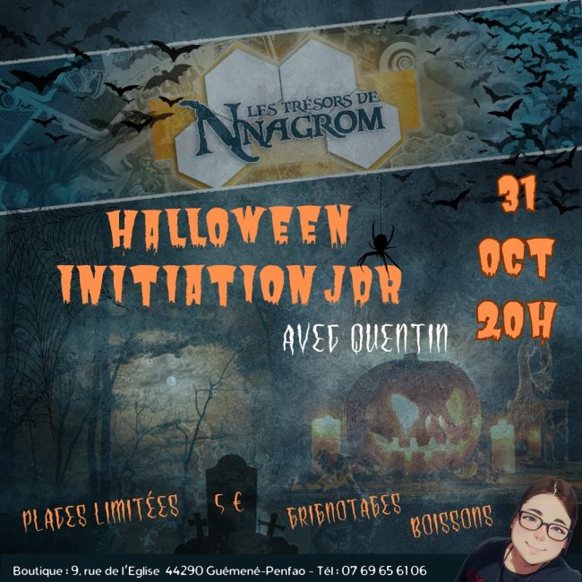 SOIREE JEUX Vendredi 24 octobre 2025 à partir de 20h Venez découvrir les jeux de la boutique ainsi que les nouveautés dans une ambiance Halloween. Venez déguisez et tentez de remporter des lots pour votre originalité… La soirée d’Halloween de la boutique proposera des Quiz, des défis et une bonne ambiance garantie. Réservation conseillée 5€…