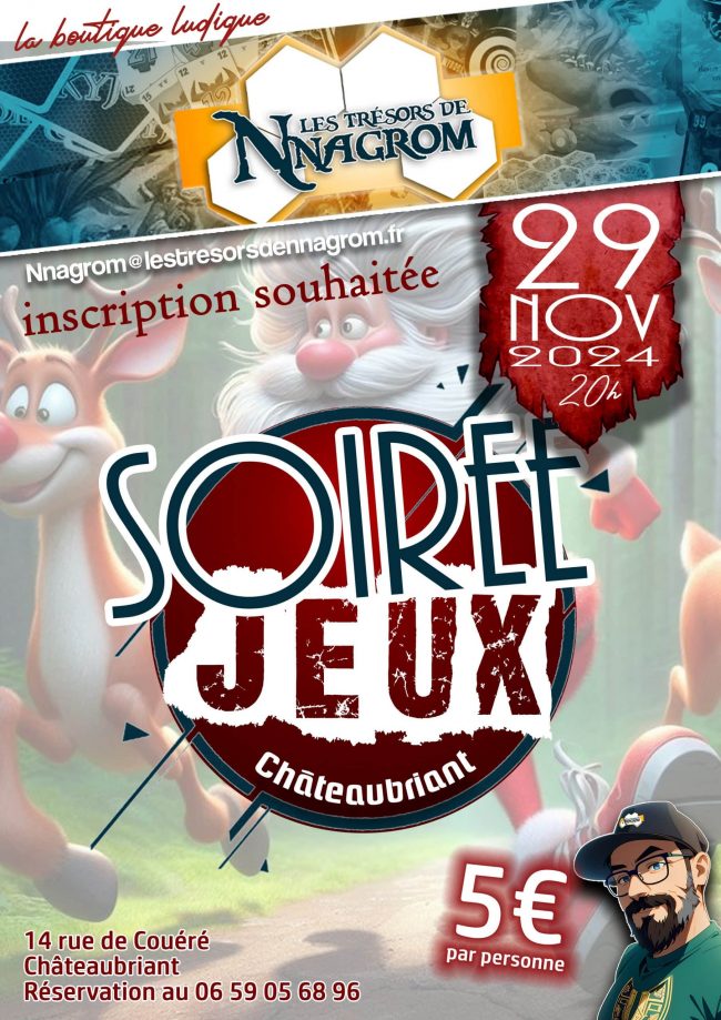 [CHATEAUBRIANT] Vendredi 29 novembre à partie de 20h Venez profiter dans une ambiance conviviale des 200 références disponible en boutique. En famille ou entre amis, de 2 joueurs à 20 joueurs, la boutique se pare des couleurs de l’hiver pour vous accueillir. Venez déguster un chocolat chaud au coin du feu avec un bon jeu…