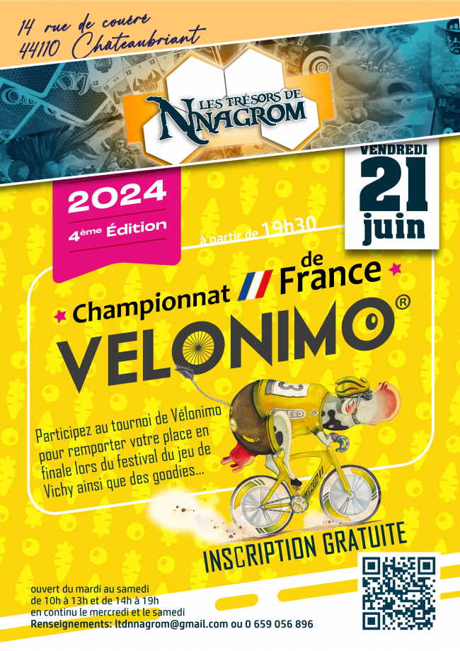 VENDREDI 21 JUIN 2024 à 19H30 Pas envie de musique, pas envie de foot !! Pour sa 4ème édition, le championnat de France de Vélonimo fait étape à Châteaubriant et plus précisément aux Trésors de Nnagrom. Du joueurs débutant au joueur connaisseur, venez tentez votre chance de participer à la grande finale qui se déroulera…