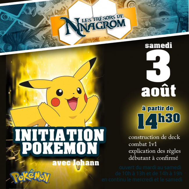 Samedi 25 octobre 2025 14H30-17H Après midi Pokémon, Johann, revient pour un après midi sous le signe des Pokémon. Partie en 1V1, échange, expertise de cartes. Venez découvrir ou augmenter votre expérience des Pokémon.