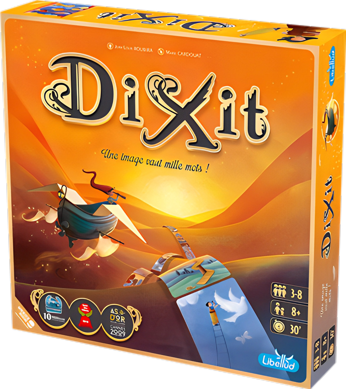 Un joueur conteur sélectionne une carte de sa main et énonce un thème en rapport avec l’illustration. Les autres joueurs choisissent une carte de leur main qui leur évoque ce thème. On mélange puis on révèle toutes les images : les joueurs doivent retrouver la carte du conteur. Pour marquer des points, son thème ne doit être ni trop simple ni trop complexe.