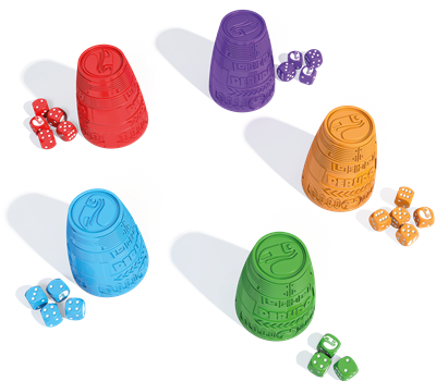 Ça va secouer dans les soirées : agitez les dés dans votre gobelet, retournez-le, pariez sur la valeur des dés et de ceux de vos adversaires !