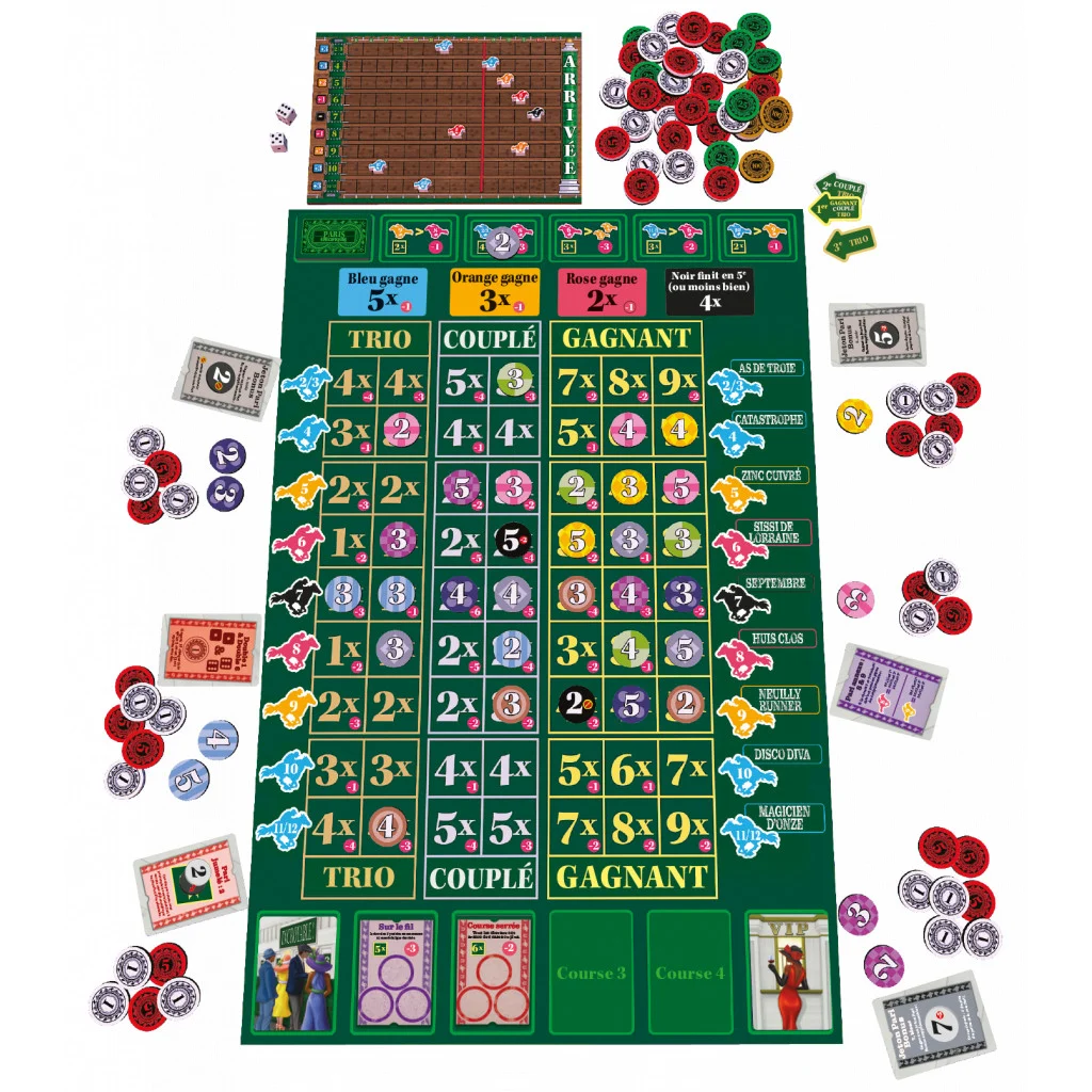 Le jeu se déroule en quatre courses, pendant lesquelles vous découvrirez à chaque fois de nouveaux paris disponibles, afin d’assurer la variété des courses. Après chaque manche, les joueurs gagnent ou perdent de l’argent pour chacun de leurs jetons de pari placés, puis reçoivent une carte de club VIP pour les aider à gagner plus d’argent dans les courses suivantes. Après quatre manches, le joueur avec le plus d’argent remporte la partie.