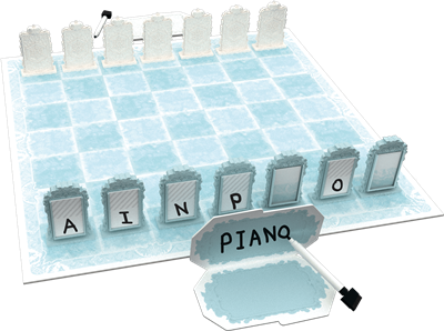 Dans Reflecto, Gerda affronte la Reine des Neiges. Chacune tente de découvrir le mot caché de l’autre grâce à des miroirs. Les deux joueurs disposent de 7 écrans. 5 contiennent chacun une lettre de leur mot, les deux autres sont des miroirs. Déplacez vos écrans contenant une lettre jusqu’à les faire sortir du plateau par le côté opposé au vôtre, et utilisez vos miroirs pour voir les lettres que votre adversaire tente de faire sortir !