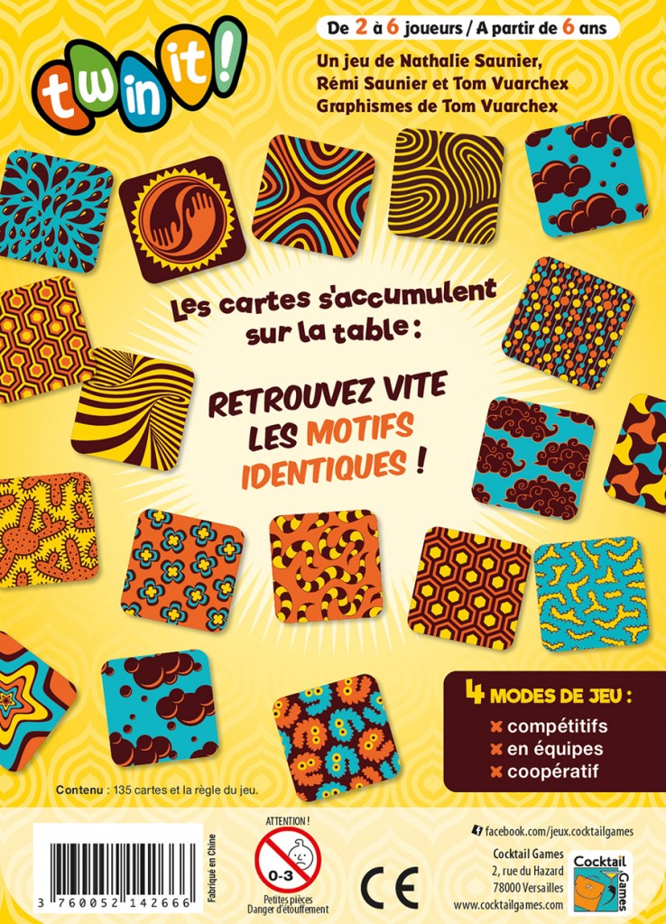 Dans Twin it, les cartes s’accumulent sur la table en formant une mosaïque colorée. Votre but ? Essayer de détecter plus vite que les adversaires les paires de cartes aux motifs exactement identiques !