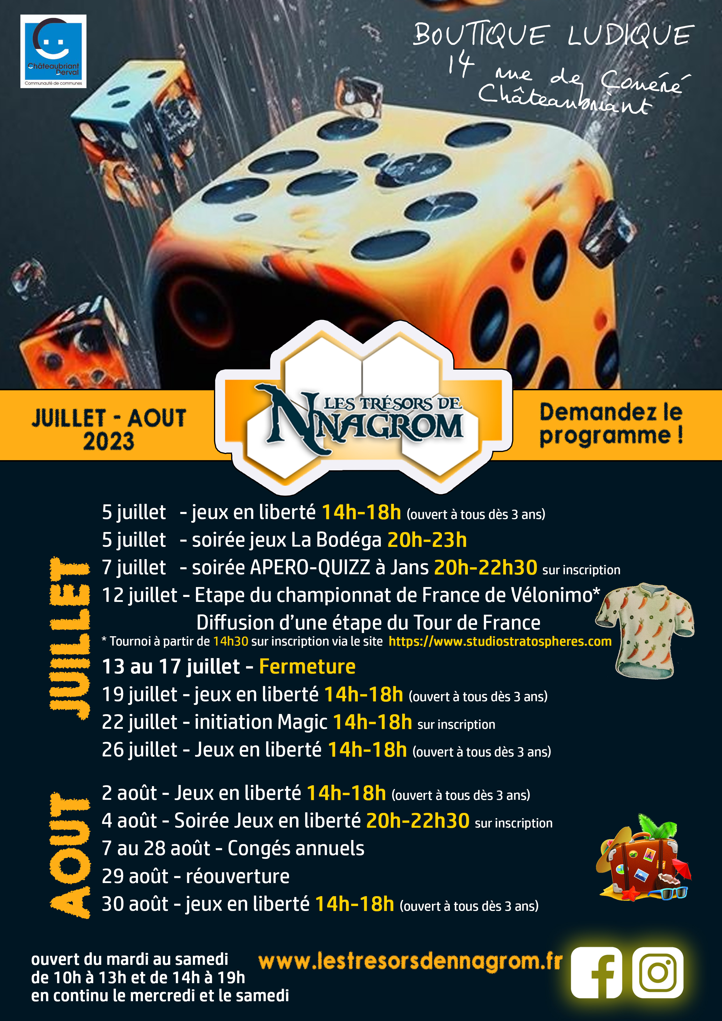 Retrouvez ici la programmation du mois de juillet et du mois d’août 2023. Il y en a pour tous les niveaux, tous les âges et toute la famille…